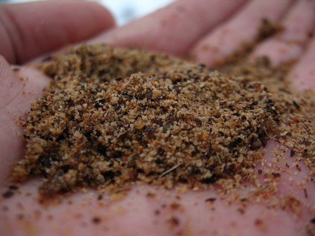 Затем добавляем воду. Лучше делать прикормку, по консистенции напоминающей густую сметану, а при забросе удобно пользоваться небольшой ложкой с удлиненной ручкой. Идеально если прикармливание будет происходить регулярно, при каждом забросе, небольшими порциями. Тем самым образом создавая в воде устойчивое облако долго не оседающей мути, в котором и стоит вести ловлю.
